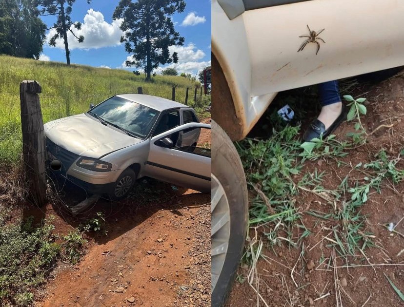 De acordo com informações, uma mulher conduzia um VW Gol no sentido Linha Lima–Centro quando se deparou com uma aranha armadeira dentro do automóvel. Assustada, a motorista abriu a porta do veículo ainda em movimento, perdeu o controle da direção e acabou colidindo contra uma estaca às margens da via.