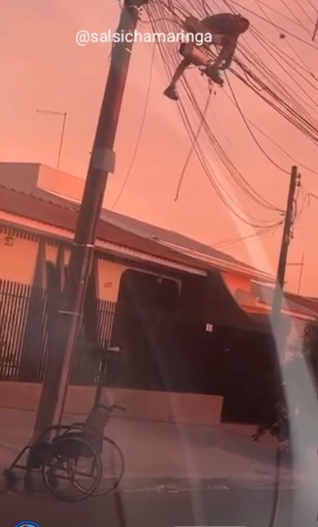 Segundo testemunhas, o suspeito agia sozinho e, apesar da dificuldade de locomoção, conseguiu cortar e retirar os cabos de energia. Surpresos com a cena, moradores registraram o momento e acionaram a Polícia Militar.