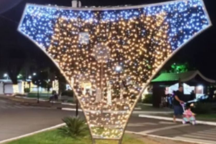 Uma ornamentação curiosa tem chamado a atenção neste Natal em Monte Belo, no Sul de Minas Gerais: uma calcinha gigante iluminada, instalada em um dos principais pontos da cidade. A estrutura rapidamente virou assunto nas ruas, rendeu inúmeras fotos e vídeos e, claro, se transformou em material para muitos memes nas redes sociais.