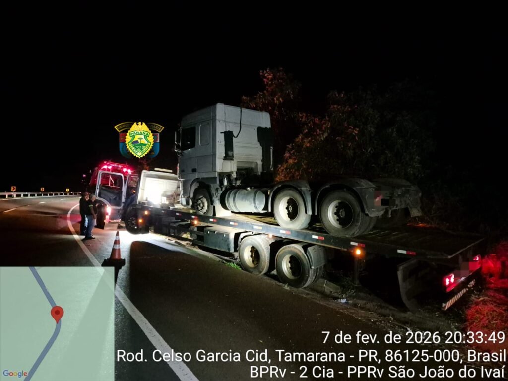 De acordo com as informações apuradas no local, o acidente envolveu um caminhão Mercedes-Benz Atego, com placas de Santo Inácio (PR). O veículo seguia no sentido Tamarana a Mauá da Serra quando, por motivos ainda a serem esclarecidos, acabou colidindo contra um barranco às margens da rodovia.