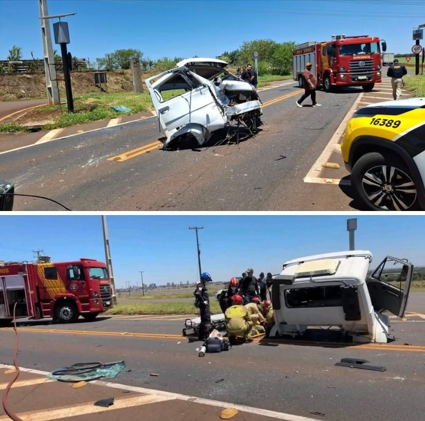 Com a força do impacto, o caminhão acabou se partindo ao meio, e a cabine foi completamente arrancada. O motorista ficou ferido e recebeu atendimento no local por equipes do SAMU e do Corpo de Bombeiros.