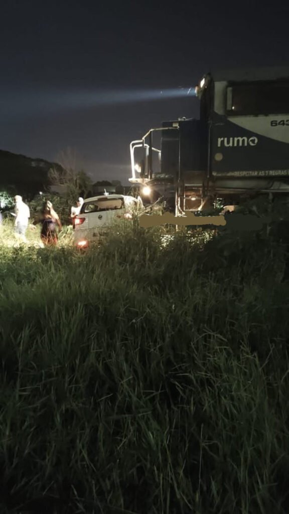 Com o impacto, um VW Fox foi atingido e acabou sendo arrastado pela locomotiva por alguns metros. No local, os socorristas encontraram duas vítimas. Uma delas apresentava contusões leves e caminhava pela área no momento do atendimento.