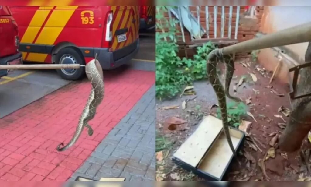 O Corpo de Bombeiros resgatou uma cobra cascavel no quintal de uma residência na Rua Luzia Cândida de Jesus, no Jardim São Clemente, em Maringá, neste domingo, 1º. O animal foi encontrado por moradores encolhido próximo ao muro do imóvel, e a captura foi realizada com segurança pelos socorristas sem o registro de feridos.