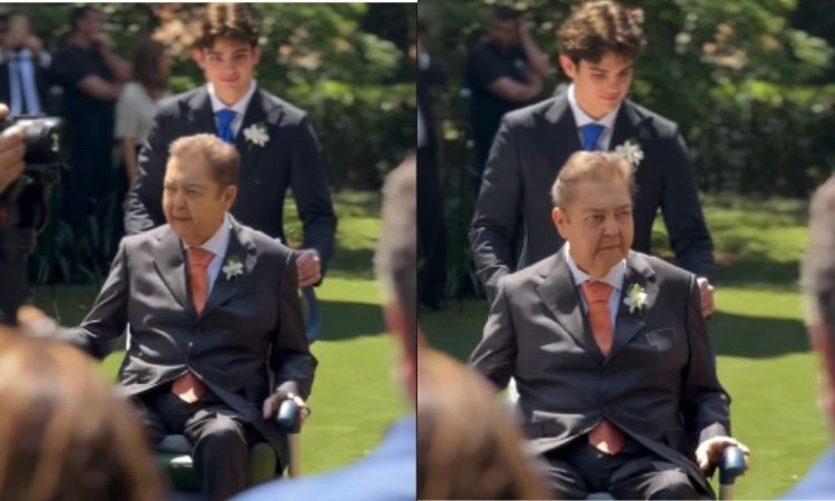 O momento foi compartilhado nas redes sociais por João Silva, filho de Faustão, emocionando os seguidores. A imagem mostra Faustão segurando a mão de Laura, enquanto era gentilmente conduzido por seu filho mais novo, Rodrigo Silva, que o ajudou a manobrar a cadeira de rodas. A cena simboliza a força e a união da família Silva neste momento especial.
