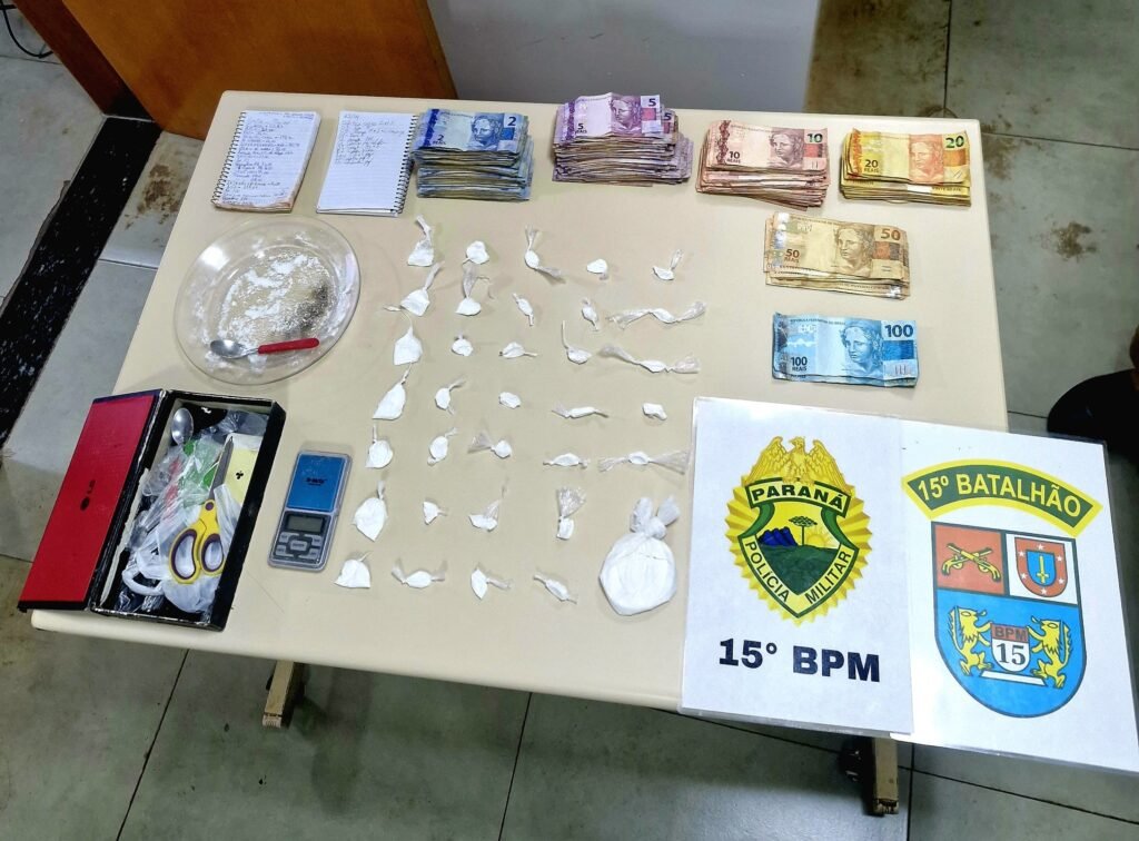 No local, a equipe encontrou uma balança digital de precisão, um prato e uma colher com vestígios da substância, além de embalagens utilizadas para fracionamento. Também foram apreendidas outras 29 porções de cocaína, totalizando 88 gramas, dois cadernos com anotações relacionadas ao tráfico e R$ 4.150 em dinheiro.