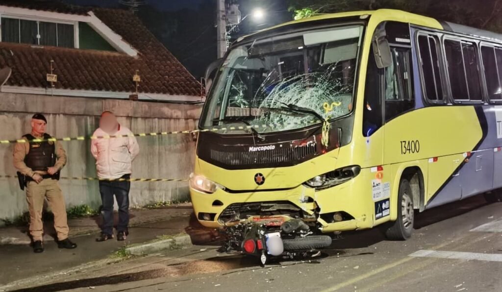 Um motoboy de 22 anos morreu após colidir com um ônibus na madrugada desta terça-feira (11), em São José dos Pinhais, na Região Metropolitana de Curitiba. Com o impacto, o jovem foi arremessado por cerca de 10 metros, e a motocicleta acabou sendo arrastada pelo coletivo.