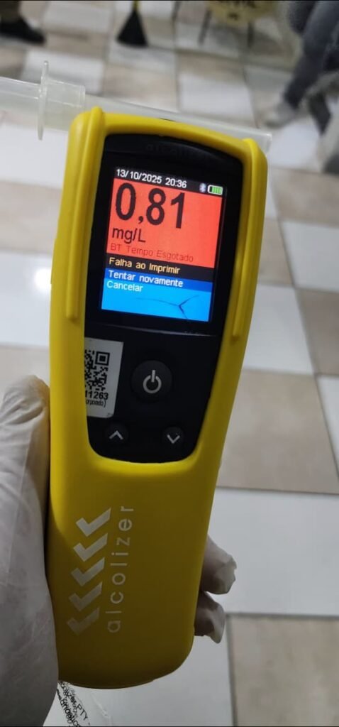 De acordo com a PRF, o condutor, que dirigia um Ford Corcel, foi avistado circulando na contramão. A abordagem foi realizada e, durante o teste do bafômetro, constatou-se um índice de alcoolemia quase três vezes superior ao limite estabelecido por lei para configurar crime de trânsito.