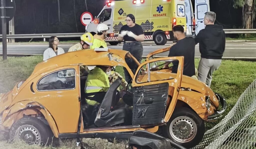 As causas exatas do acidente ainda serão apuradas, mas, segundo relatos no local, os ocupantes do Fusca podem ter “se perdido” ao tentar desviar do outro veículo.