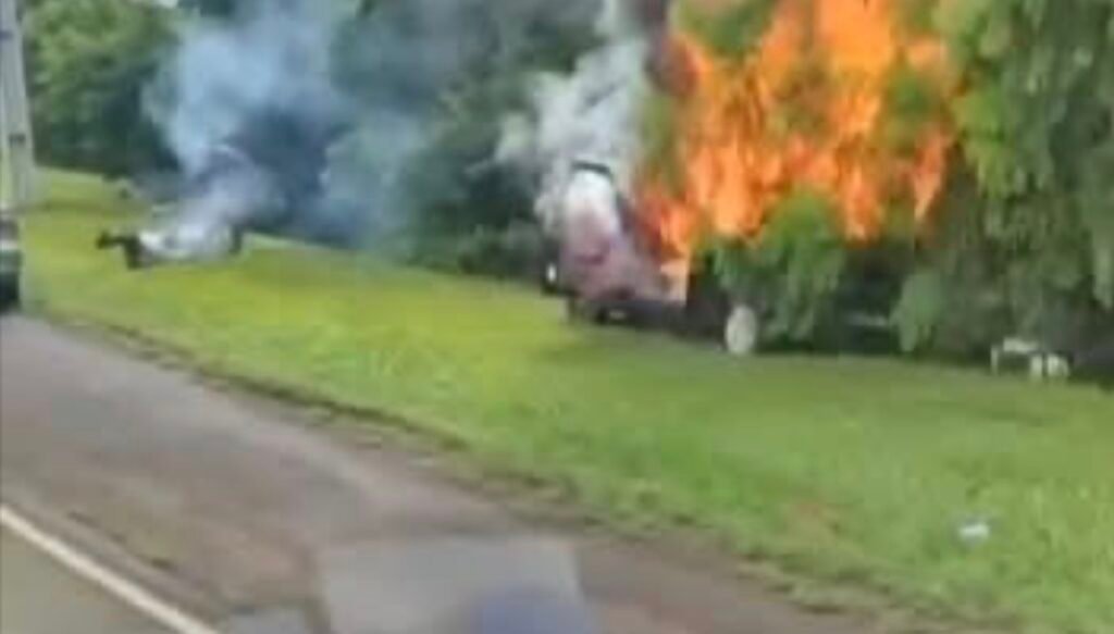 Um grave acidente foi registrado na tarde desta quarta-feira (25) na BR-369, no trecho entre Cambé e Rolândia. Após a colisão, um dos veículos envolvidos foi tomado pelo fogo, e o motorista conseguiu sair do automóvel já com queimaduras pelo corpo.
