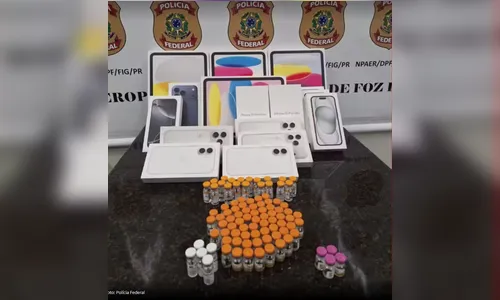 A mulher tentava embarcar para São Paulo quando teve as bagagens vistoriadas. Além do medicamento, um injetável utilizado para controle de diabetes e obesidade (princípio ativo do Mounjaro), os agentes encontraram diversos aparelhos eletrônicos, como celulares e tablets, sem documentação fiscal. Segundo a PF, o valor estimado das mercadorias ultrapassa R$ 100 mil.