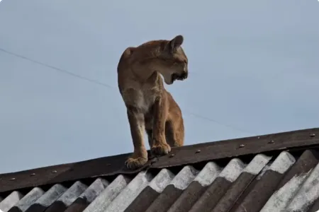 Onça-parda é encontrada em telhado de casa e é resgatada após ser laçada por morador no Paraná