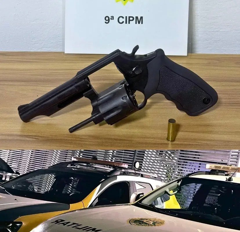 Equipes da RPA da 9ª CIPM, com apoio das viaturas Beira Rio e Canil (Base Protetor), localizaram o veículo suspeito e realizaram a abordagem. Durante a revista, os policiais apreenderam um revólver calibre .38 com a numeração suprimida, além de um carro e duas motocicletas.