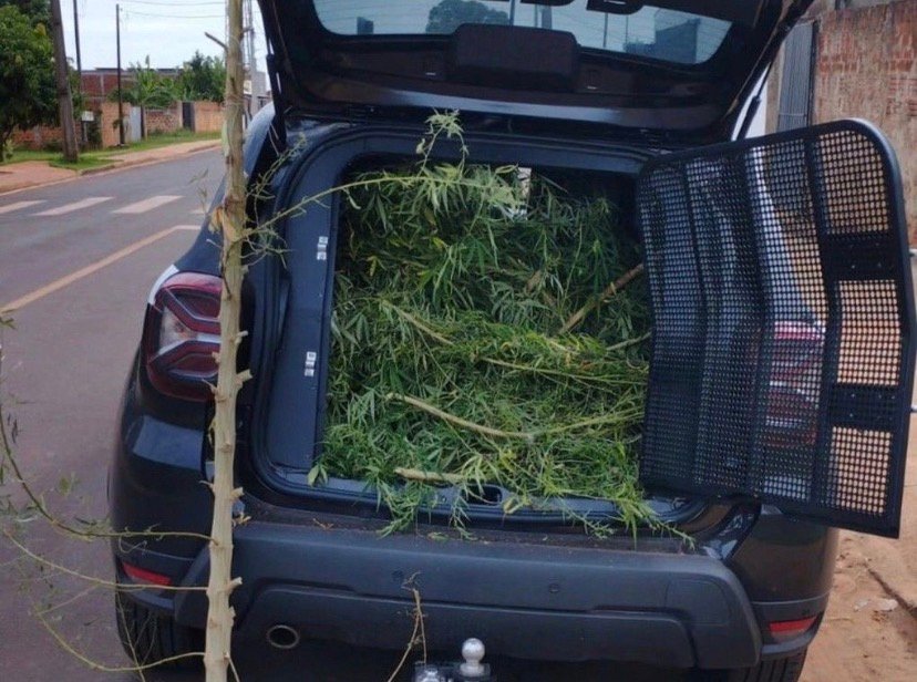 A Polícia Civil do Paraná apreendeu, nesta semana, um pé de maconha com aproximadamente 2,5 metros de altura que estava plantado na lateral de uma residência, em plena via pública, na Avenida Taquari, no município de Mirador.