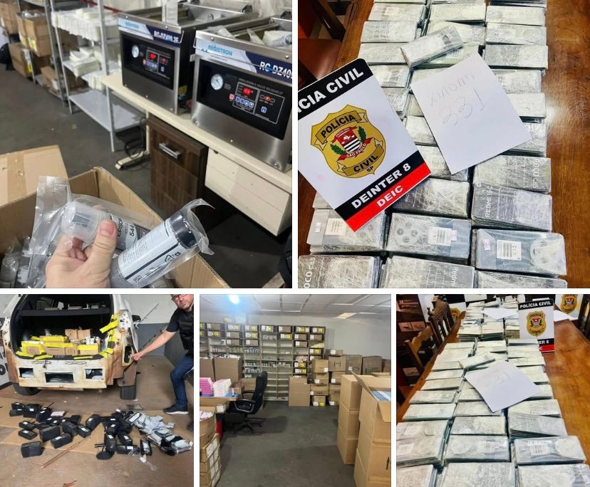 Em outro endereço alvo da operação, os policiais localizaram mais produtos prontos para comercialização. As investigações apontam que comerciantes adquiriam os itens de revendedoras que se apresentavam como oficiais, inclusive com emissão de nota fiscal, o que evidencia a sofisticação do esquema.