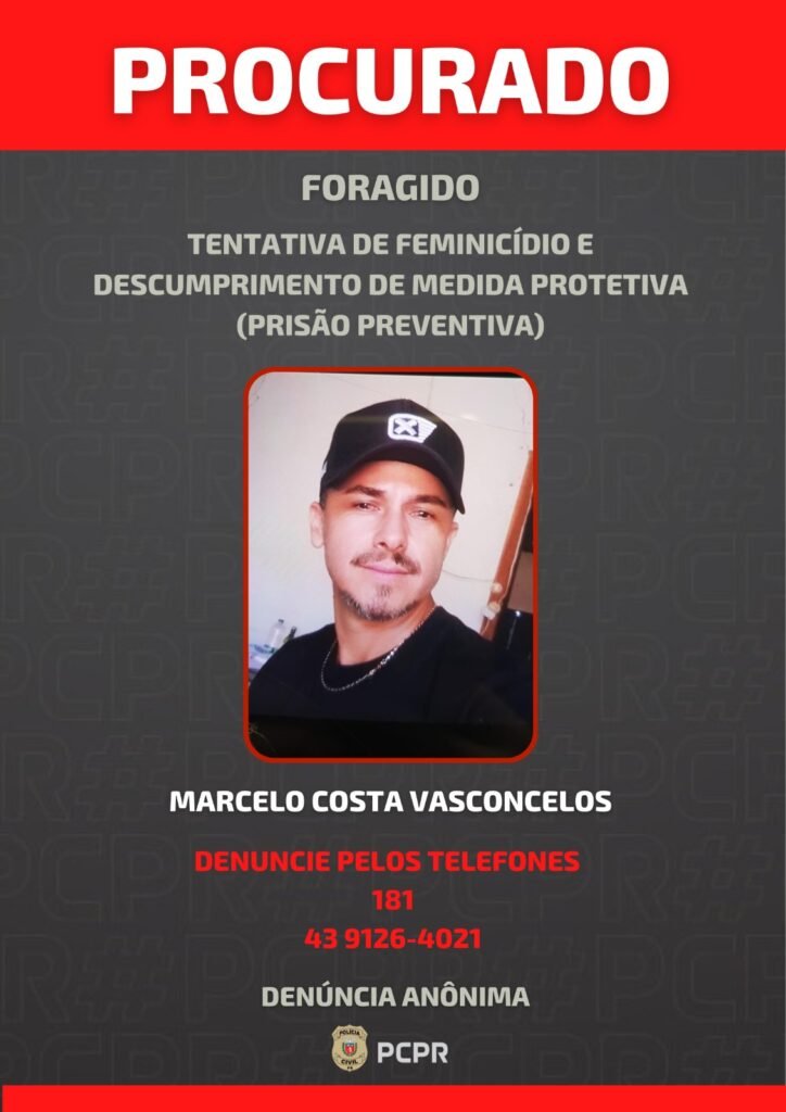 A Polícia Civil está em busca de um homem suspeito de envolvimento em uma grave tentativa de feminicídio registrada em Lupionópolis. A Justiça expediu um mandado de prisão preventiva contra o investigado, que permanece foragido.