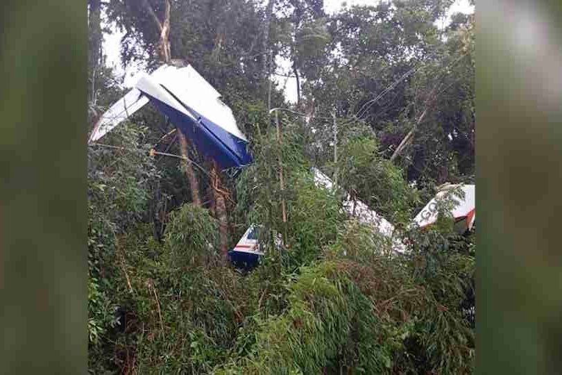 Ao se aproximar, o morador constatou que se tratava de um avião de pequeno porte que havia caído entre as árvores.