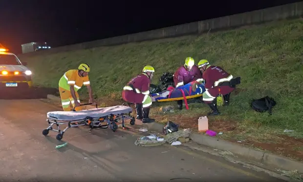 O acidente foi registrado por volta das 23h. A vítima, identificada como Rafael Pereira Teobaldo, perdeu o controle da moto ao acessar a alça de entrada da marginal, no sentido do bairro Jardim Ana Rosa.