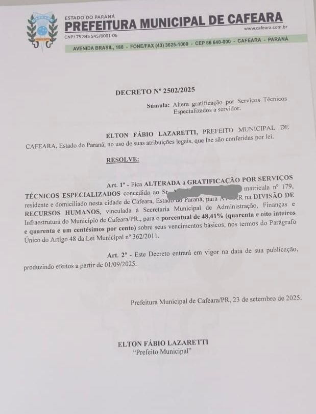 Pois, pois, se tem uma coisa que não podemos negar é que o prefeito de Cafeara, Elton Lazaretti, valorizou (e muito) os servidores públicos municipais.