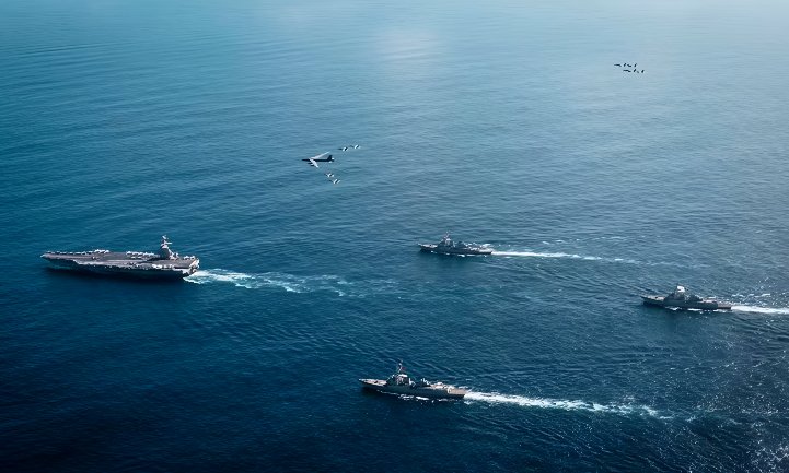 A Marinha dos EUA, em uma ação incomum, liberou as fotografias da operação, que incluem os navios USS Winston Churchill, USS Mahan e USS Bainbridge, além de caças e bombardeiros. A movimentação ocorre em meio à crescente retórica entre Washington e Caracas, elevando o nível de alerta na região.