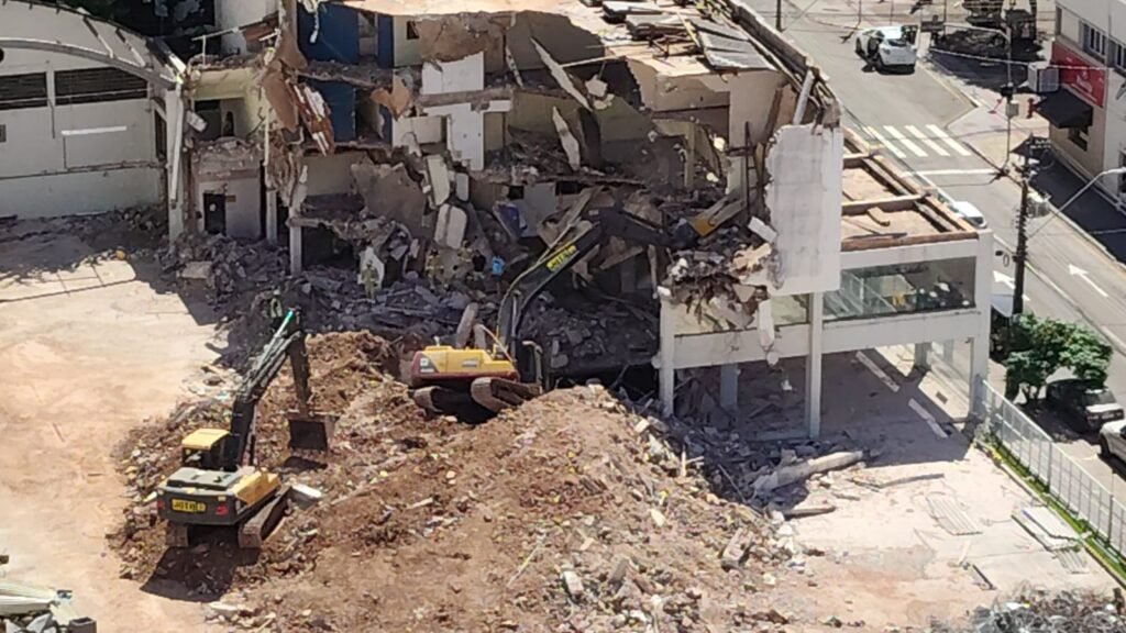A demolição do prédio começou em fevereiro e a área estava isolada para a execução do serviço. A Polícia Militar e agentes de trânsito atuam na região para orientar motoristas, já que há bloqueios parciais no centro para facilitar o trabalho das equipes de emergência.